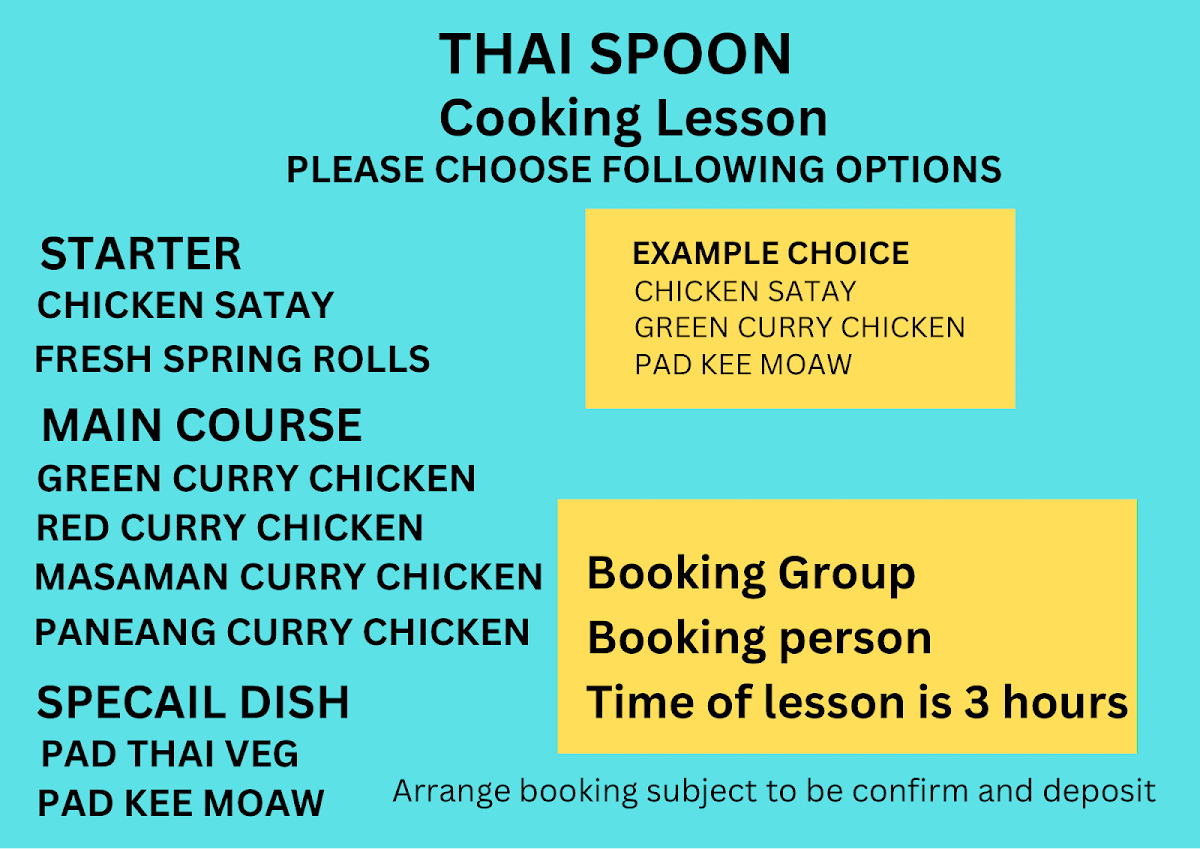 Thai Spoon Shrewsbury Menu